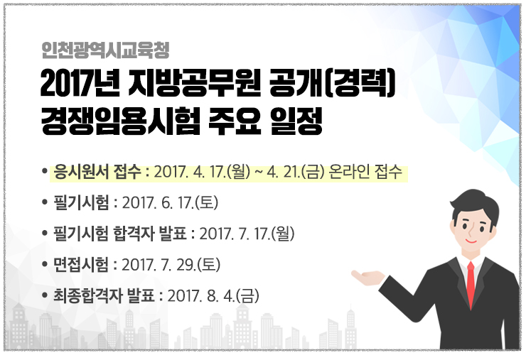 2017년도 인천광역시교육청 지방공무원 공개(경력)경쟁임용시험 계획 공고
