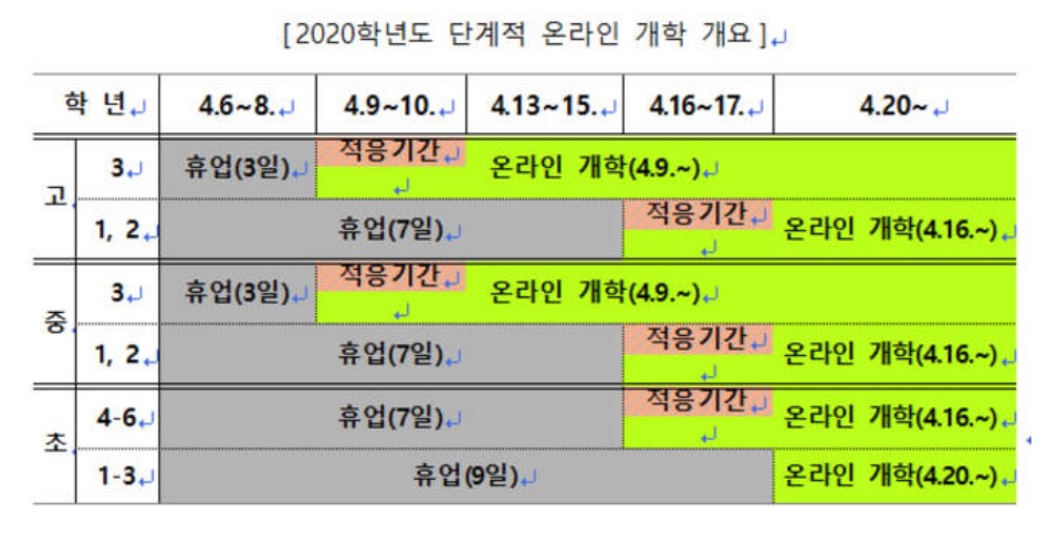 드디어 2020년 초중고 온라인 개학 일정이 발표가 되었습니다.